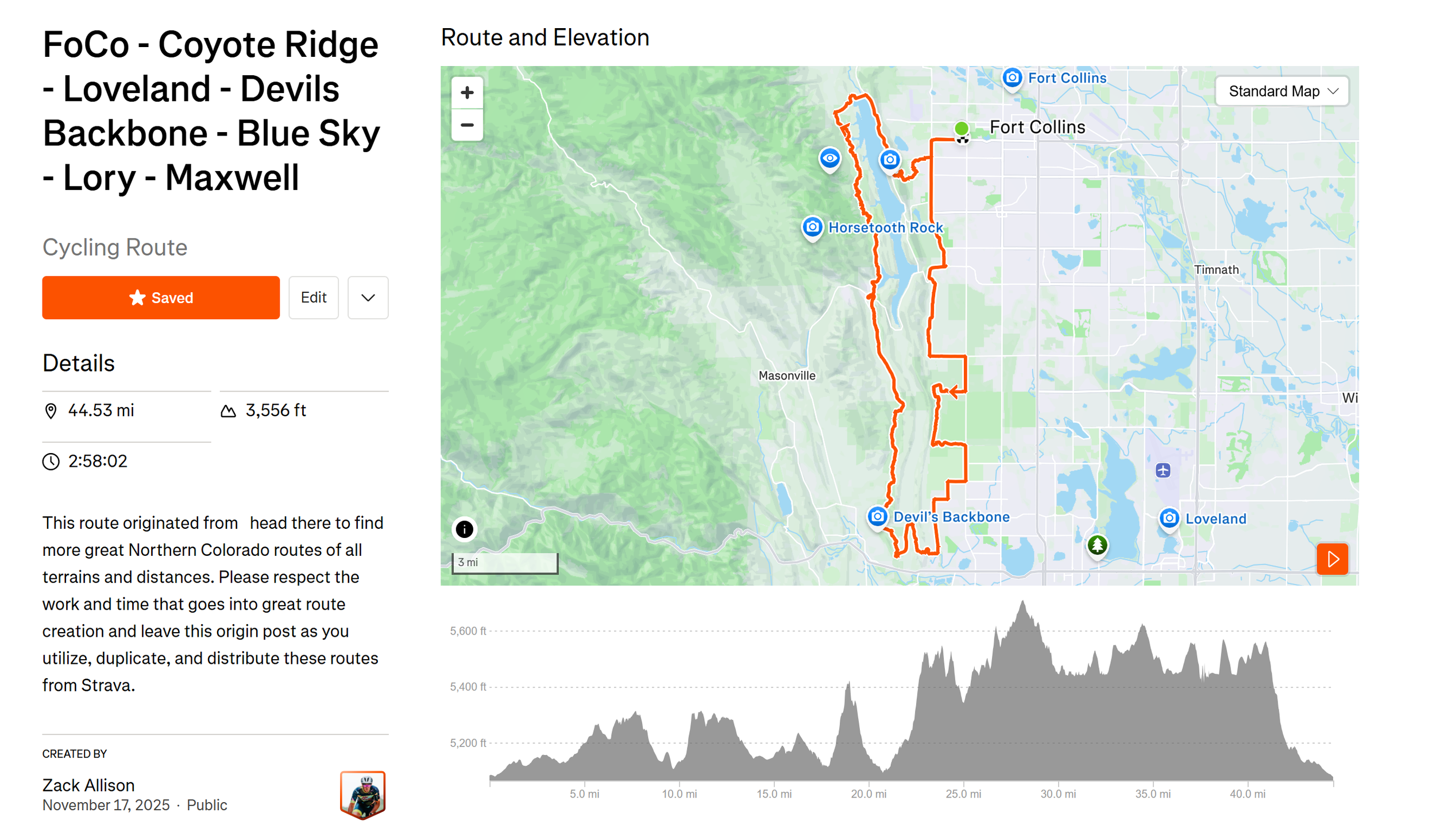 FoCo - Coyote Ridge - Loveland - Devils Backbone - Blue Sky - Lory - Maxwell